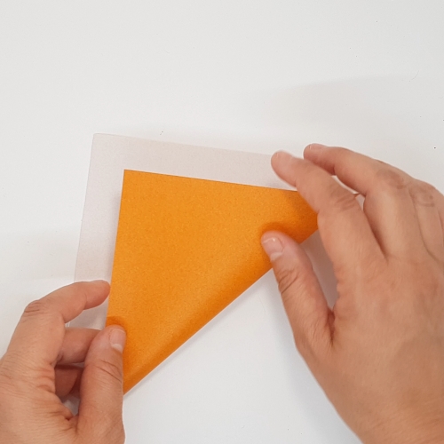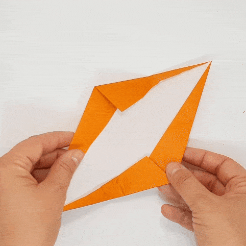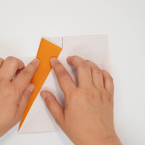 Bring the right corner inward to meet the new reference points and fold and unfold along the dotted lines.