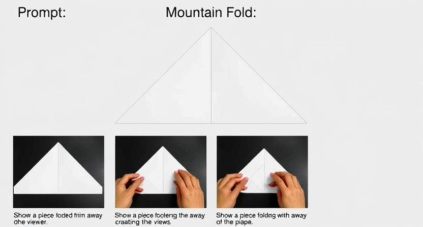 The mountain fold technique is a fundamental origami fold that creates a peak in the paper, resembling a mountain when folded. To execute this fold, simply fold the paper away from you along the designated crease line, creating a triangle shape with the tip pointing upwards. Press down firmly on the crease to secure the fold in place.