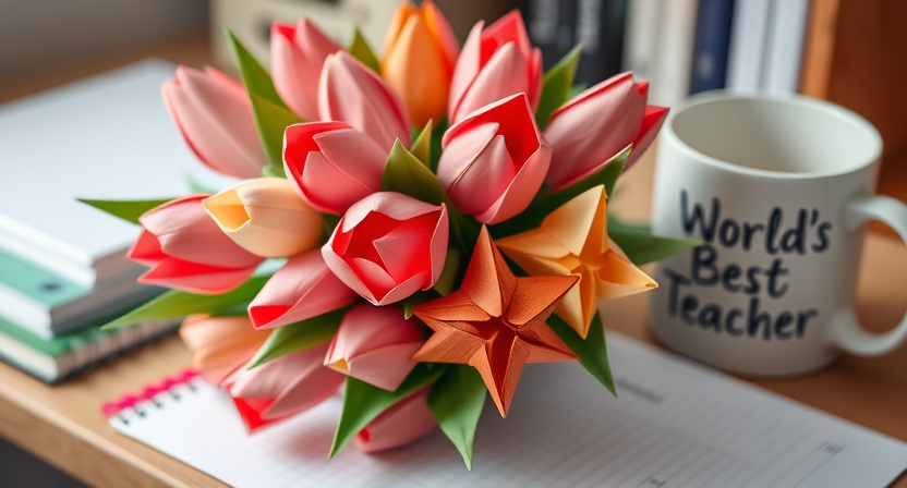 Are you looking for a unique way to show your appreciation to a special teacher? Origami gifts can be a thoughtful and creative option. Consider folding a bouquet of origami flowers using colorful paper to brighten up their day. These handmade flowers will not only last longer than real ones, but they also make a beautiful and personal gift.