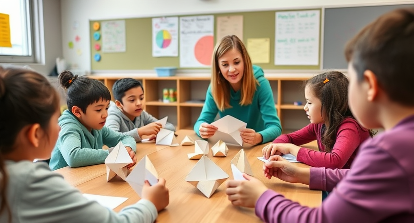 In classrooms, teachers often use origami to teach geometric concepts, fractions, symmetry, and other mathematical principles in a hands-on and visually appealing manner. Additionally, origami can be used to facilitate teamwork and collaboration among students, encouraging communication and sharing of ideas. Through the process of folding paper and following instructions, students learn to follow sequential steps, improve their attention to detail, and enhance their perseverance in completing tasks.