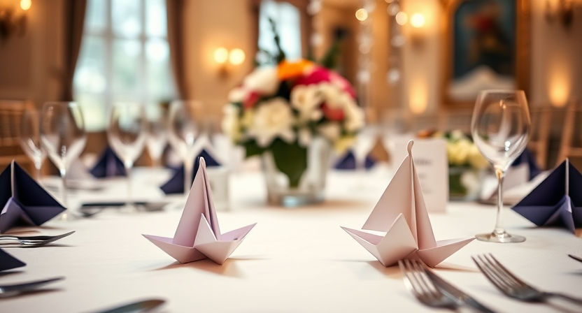 Origami place cards offer a delightful touch to any event, serving both a functional and aesthetic purpose. These miniature folded creations not only guide guests to their designated seats with elegance but also add a charming element to the overall tablescape. The art of origami allows for endless customization, enabling hosts to tailor each place card to match the theme or color scheme of the occasion.